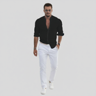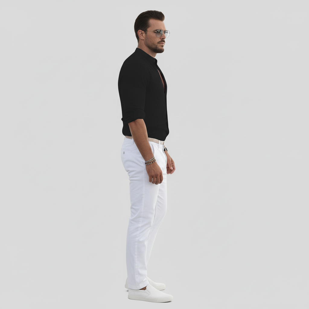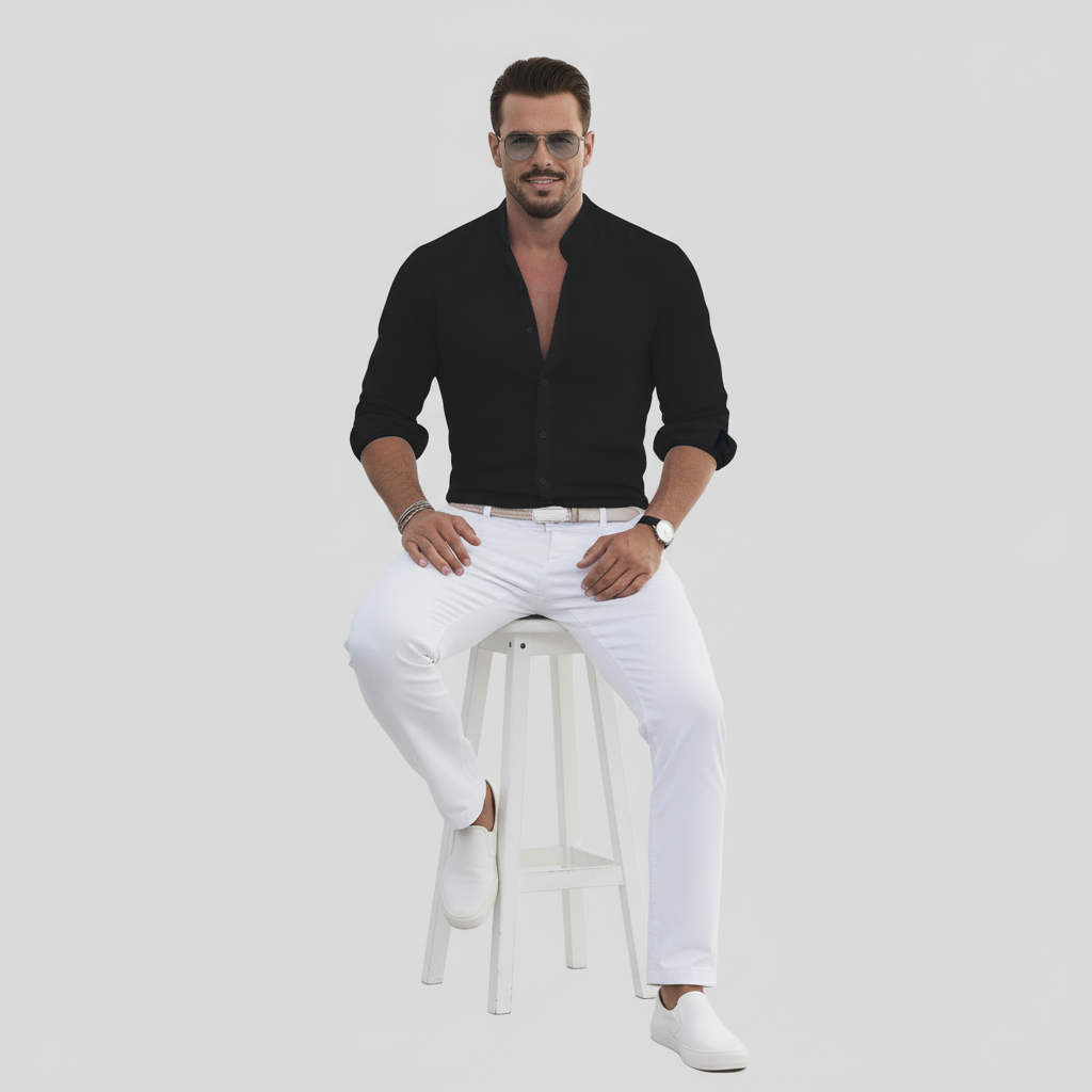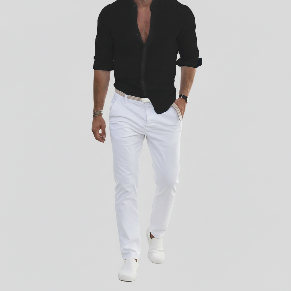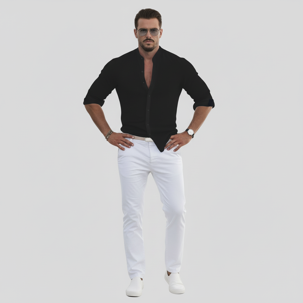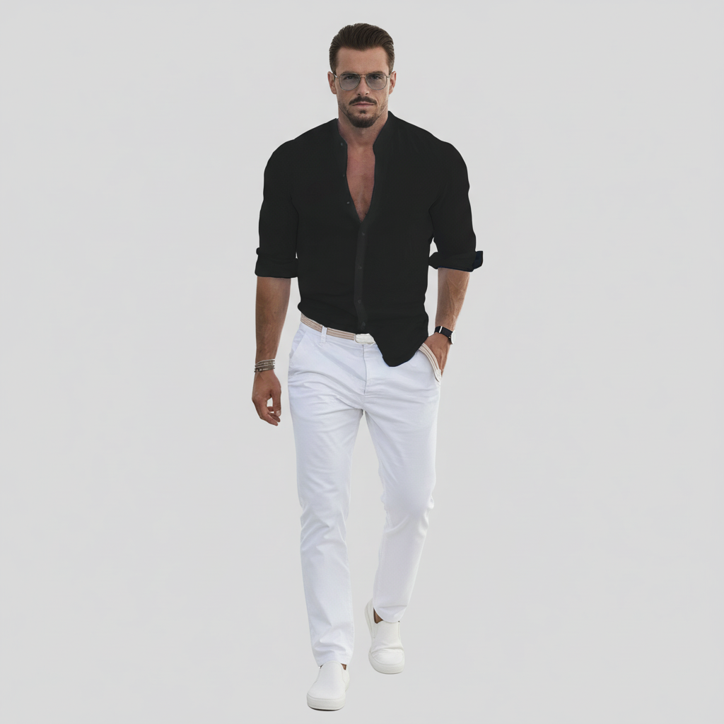Lyft din stil med Herivelles herrskjorta. Designad för komfort och stil med bandkrage, långa ärmar och slim fit-passform. Perfekt för varmt väder med sitt luftiga tyg som garanterar komfort hela dagen, vilket gör den till ett mångsidigt tillskott till din garderob.