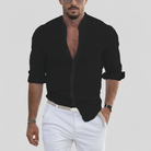 Herrskjorta - Slim Fit - Långärmad Bandkrage - Knäppning