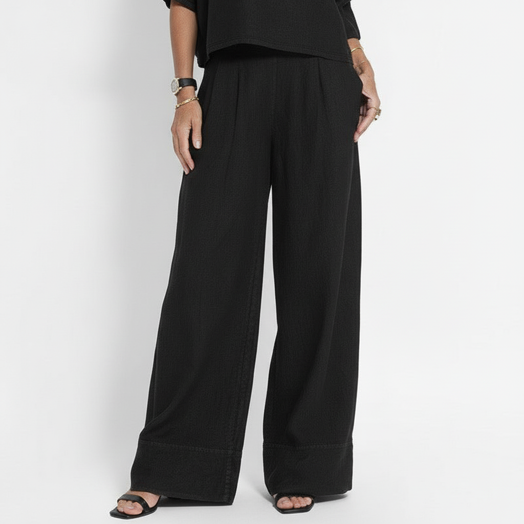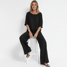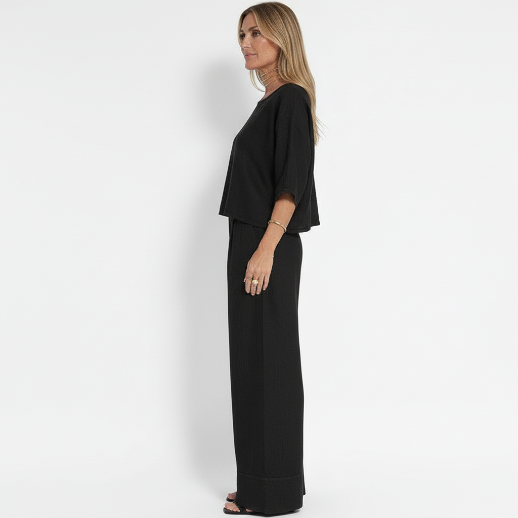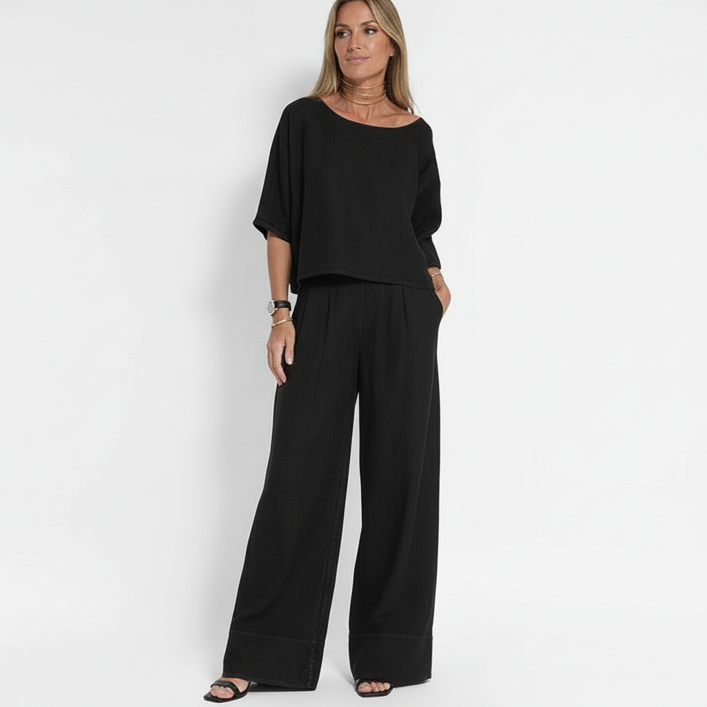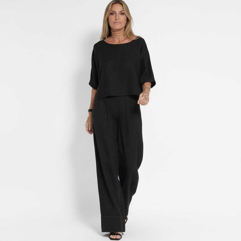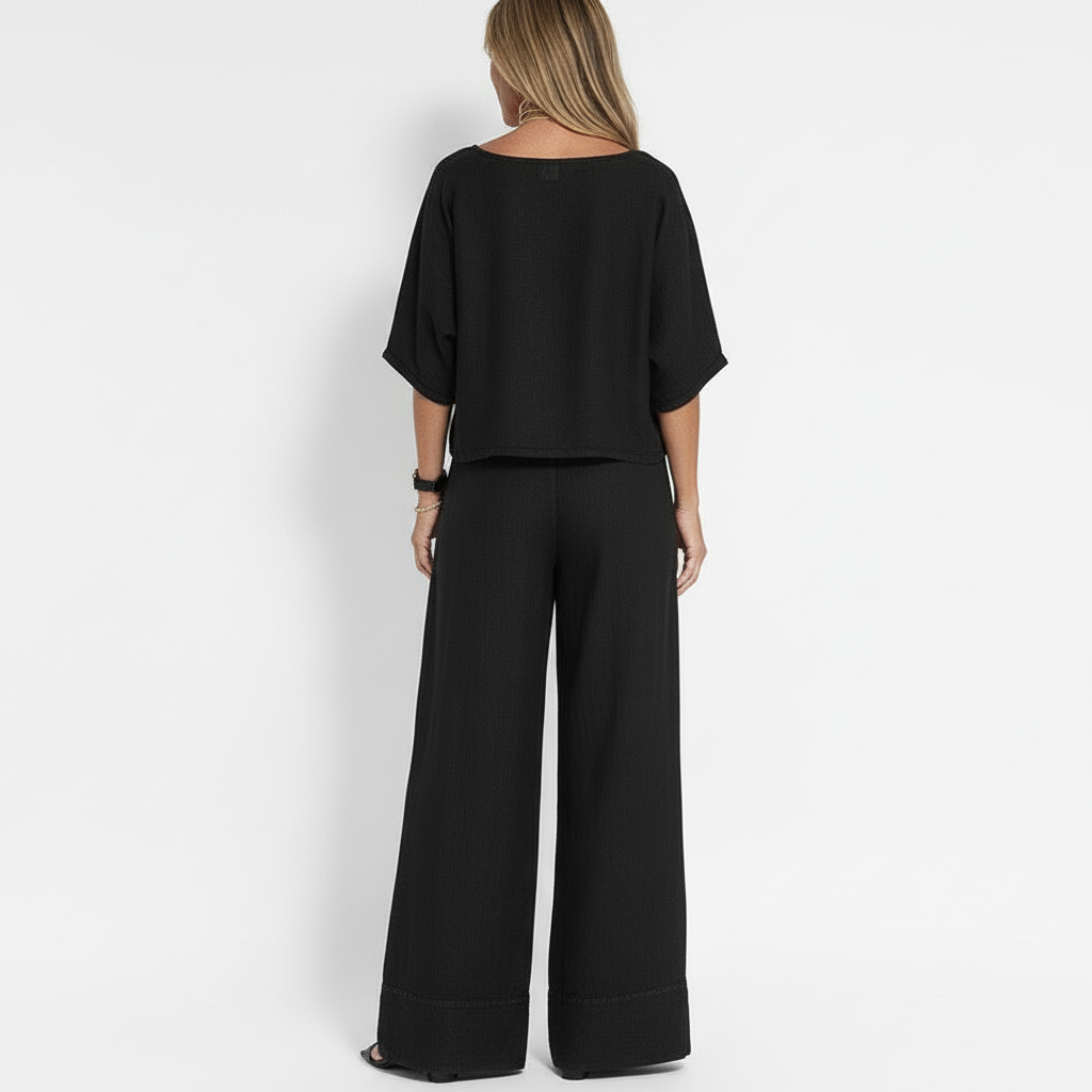 Tvådelat Set för Kvinnor – Avslappnad Passform – Kortärmad Topp & Vida Byxor