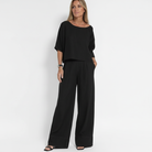Enkelt chict, detta tvådelat set för kvinnor från Herivelle är ditt nya varmt väder-basplagg. Detta bekväma och stilfulla set har luftigt tyg, avslappnad passform och praktiska vida byxor perfekta för avslappnade utflykter eller avkopplande kvällar.
